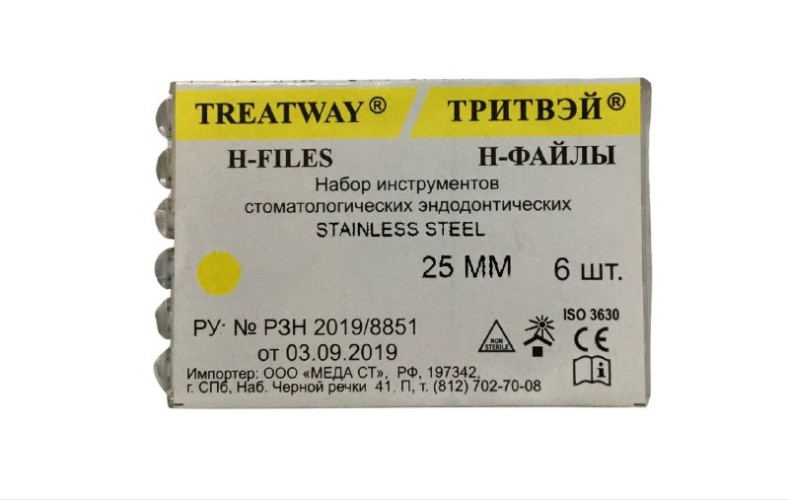 Н-Файл № 15-40 ТРИТВЭЙ длиной 25 мм – ручной стоматологический инструмент, предназначенный для очистки, расширения, а также выравнивания корневых каналов. Рабочая часть имеет практичную спиральную нарезку. Рабочая часть Н-Файла № 15-40 ТРИТВЭЙ сделана из высококачественной нержавеющей стали – прочного, устойчивого к износу материала. Рукоятка изготовлена из специального пластика, который не проскальзывает в руке. Инструмент может стерилизоваться.