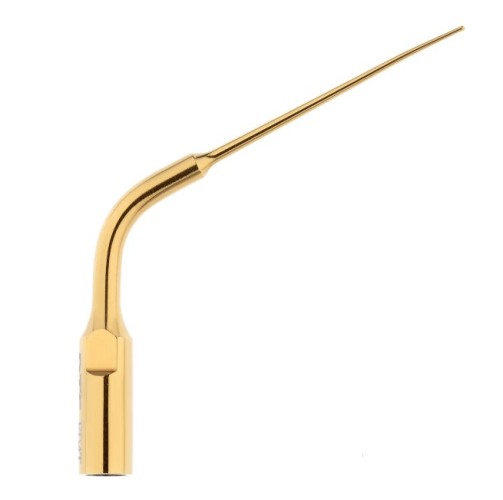 Периодонтическая насадка ED4T для скалера с изогнутой формой и нитрид-титановым покрытием обеспечивает комфортную работу. Длина рабочей части 10 мм и диаметр 0,5 мм позволяют аккуратно и безопасно удалять инородные тела. Стерильность обеспечивает безопасность процедур, а эргономичная конструкция повышает их эффективность.